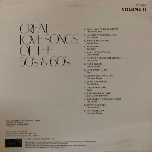 Various Artists - Great Love Songs Of The 50's & 60's Vol. 2 (1985)